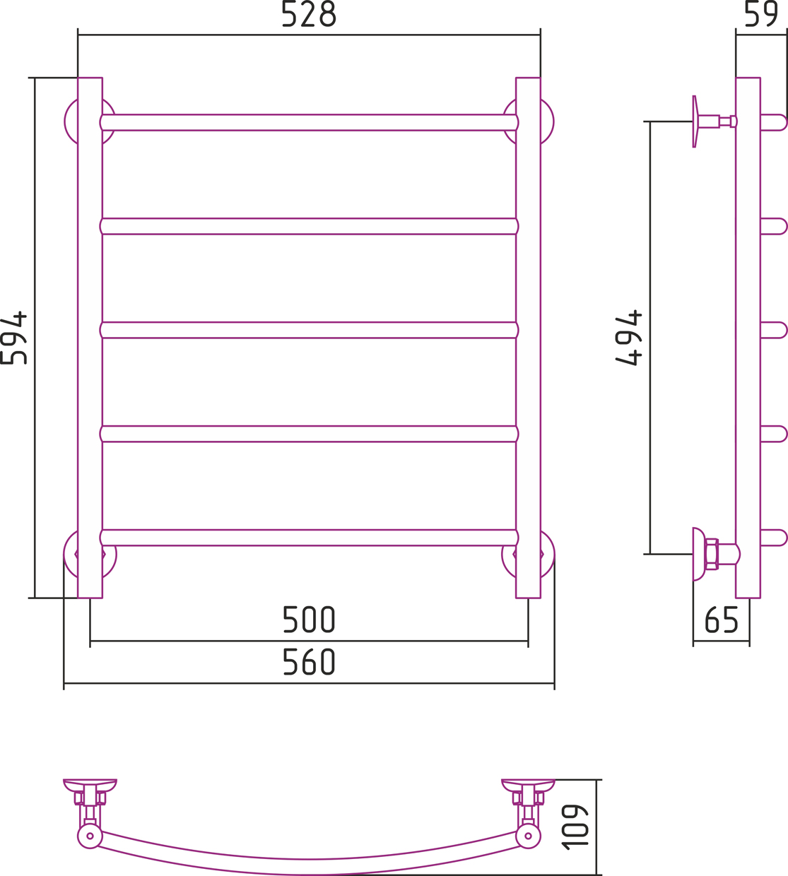Полотенцесушитель водяной Стилье ВЕРСИЯ-Н2  00622-6050 600х500