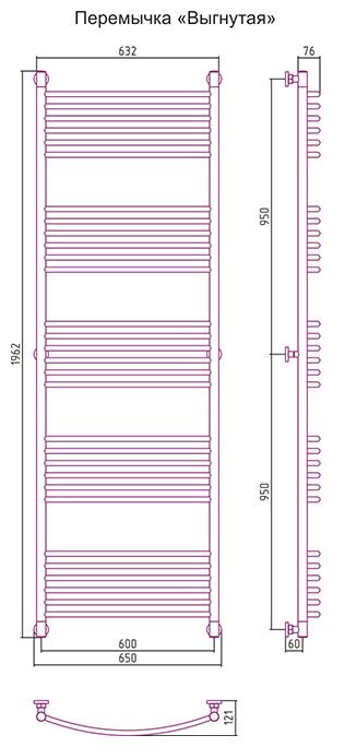 Полотенцесушитель водяной Сунержа БОГЕМА+ 00-0221-1960 1900х600