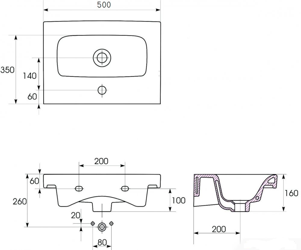 —Раковина Cersanit MODUO SLIM 50